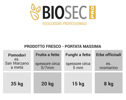 Biosec PRO je sušička novej generácie, ktorú navrhla a vyrába spoločnosť Tauro. Vďaka automatickým programom je proces sušenia jednoduchý a okamžitý, ale ponecháva vám autonómiu pri určovaní prevádzkovej teploty: vypracujte s naším tímom špecializované a prispôsobené riešenia pre vaše potreby.